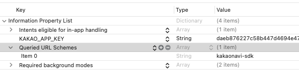 LSApplicationQueriesSchemes 추가 및 Item에 kakaonavi-sdk 추가