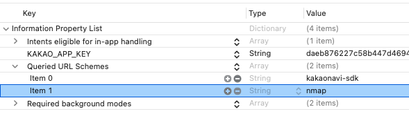 LSApplicationQueriesSchemes 추가 및 Item에 nmap 추가