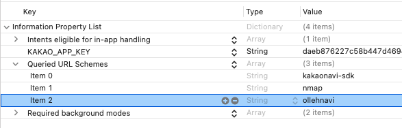 LSApplicationQueriesSchemes 추가 및 Item에 ollehnavi 추가