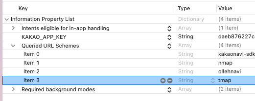 LSApplicationQueriesSchemes 추가 및 Item에 tmap 추가